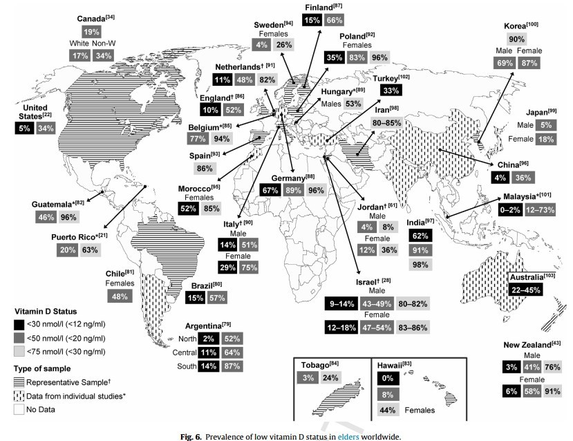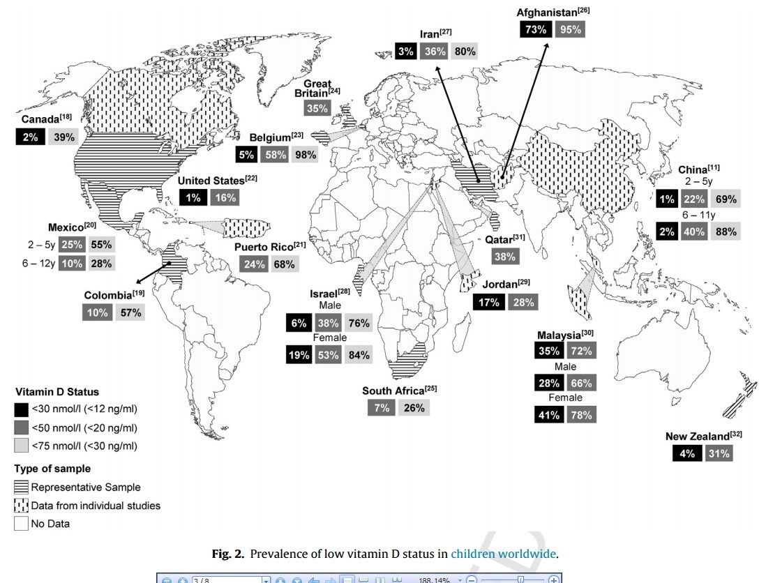 In areas with available data, the prevalence of low vitamin D status is a global problem in all age groups,