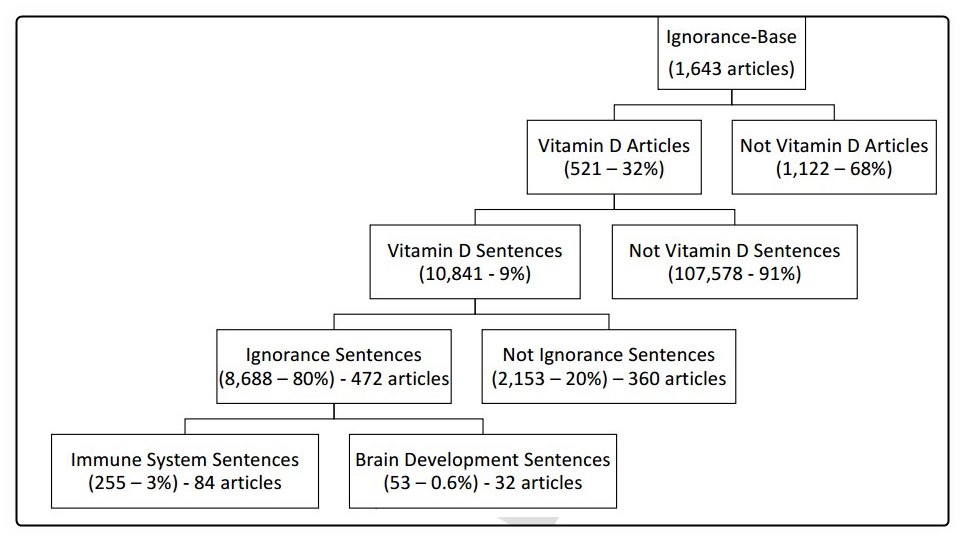 Our ultimate goal was to create an ignorance-base and exploration methods to enable students, researchers, funders, and publishers to find the next important scientific questions or knowledge gaps. By augmenting and streamlining the manual work of literature reviews, we can help direct research to focus on important quesitons and possible answers. The exploration by topic method not only found new avenues for exploration for researchers interested in vitamin D using our novel method of ignorance enrichment (the immune system, respiratory system, and brain development), but also elucidated how questions were asked and how that changed over time using our novel method of ignorance-category enrichment. Our exploration by experimental results method found an emerging topic (brain development) with specific knowledge goal statements to pursue that bear on a sPTB and vitamin D gene list. Further, the findings suggested a field (neuroscience) to look to for answers. These questions (and subsequent answers) have high potential to positively impact the health of pregnant women and their offspring globally. The importance of questions and knowledge goals in research is well established, and our ignorance-base and exploration methods bring these to the forefront to help researchers explore a topic and experimental results in the context of our collective scientific ignorance. The scientific endeavor rests on our continuous ability to ask questions and push research farther as we learn more knowledge.