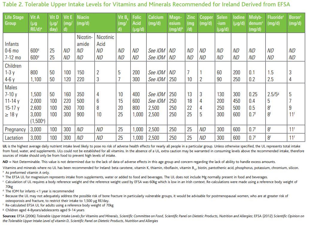 The Safety of Vitamins and Minerals in Food Supplements – Establishing Tolerable Upper Intake Levels and a Risk Assessment Approach for Products Marketed in Ireland