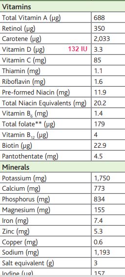 Note that Irish children only get 132 IU of Vitamin D (mean)