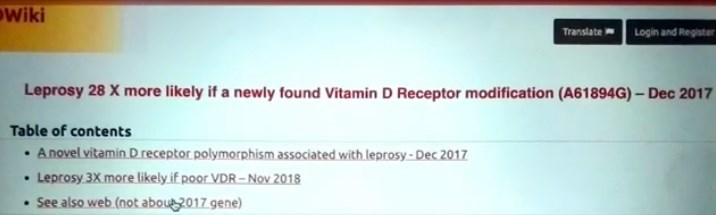 Dr. Win learned from VitaminDWiki that Leprosy is 28X more likely if poor Receptor
