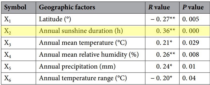 Annual sunshine is the most important