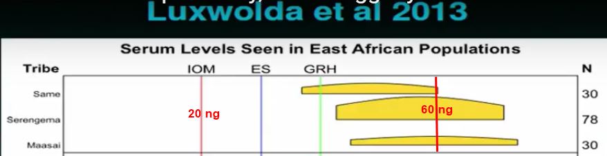 - Pregnant women in East Africa have vitamin D levels of about 60 ng
