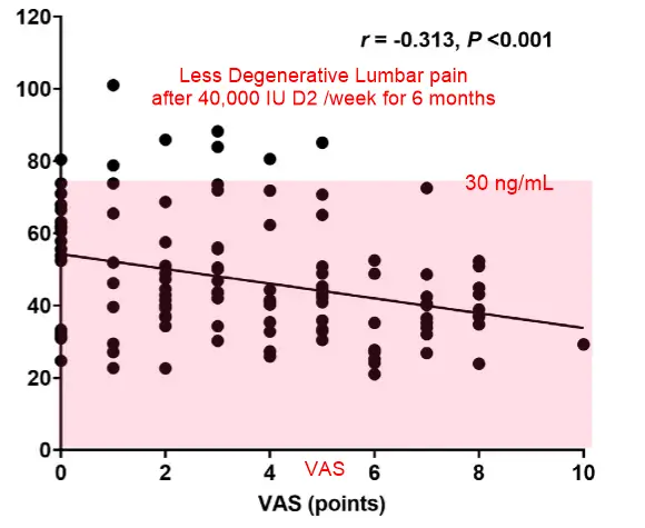 - Back pain associated with less than 40 ng vitamin D – March 2013