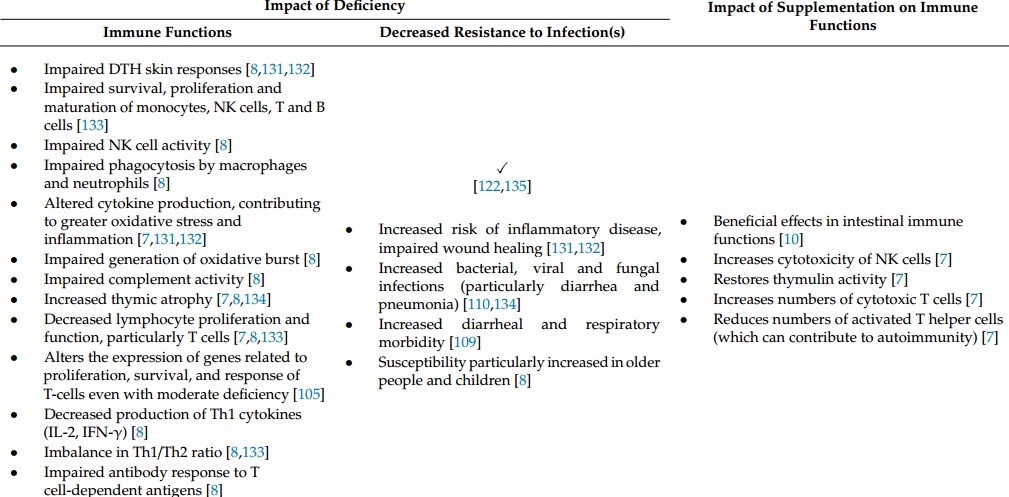 Clearly, micronutrients are an integral part of the immune system, and the body needs optimal levels for effective immune function. It is well established that overt micronutrient deficiencies can adversely affect the immune system and predispose individuals to infections. It is likely that marginal deficiencies are also associated with increased risk of infections, although the effect may be less pronounced than those observed with overt deficiencies.