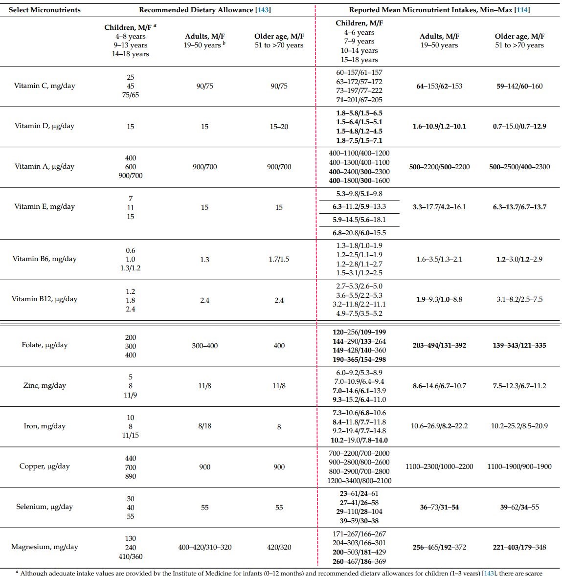 - United States Department of Agriculture. What We Eat in America, NHANES 2013-2016. Usual Nutrient Intake from Food and Beverages, by Gender and Age. 2019. Available online: https://www.ars.usda.gov/ ARSUserFiles/80400530/pdf/usual/Usual_Intake_gender_WWEIA_2013_2016.pdf (accessed on 28 May 2019).