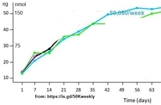 an additional 18 health problems are fought if take 50,000 IU weekly