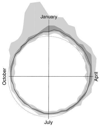 This chart might impliy that the amount of change in seasonal death rate would vary with latitude