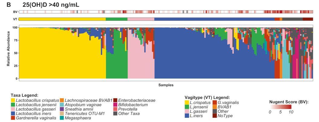 Conclusion Certain vaginal bacteria are associated with plasma 25(OH)D concentration.