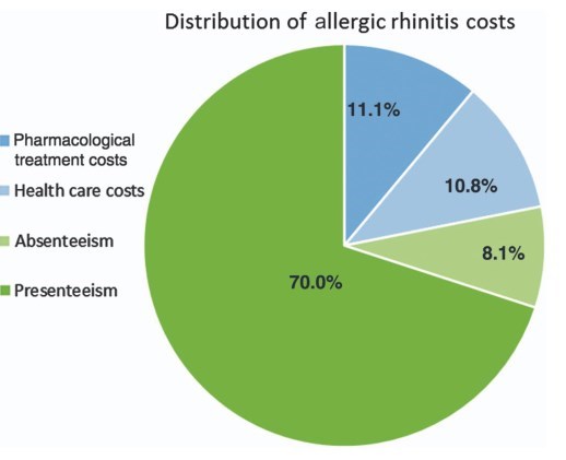 - “Recent research found an estimated 3.6 percent of missed work time (absenteeism) and 35.9 percent of work performance problems (presenteeism) resulted from nasal allergies.”