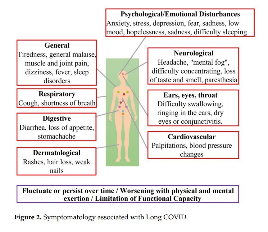 Long-haul fatigue, etc. common after viral infections (SARS1,2, MERS, Swine, 1918,...) which contains