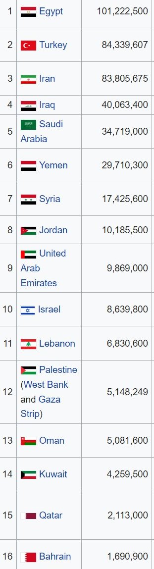 - Middle East: map and 2020 population