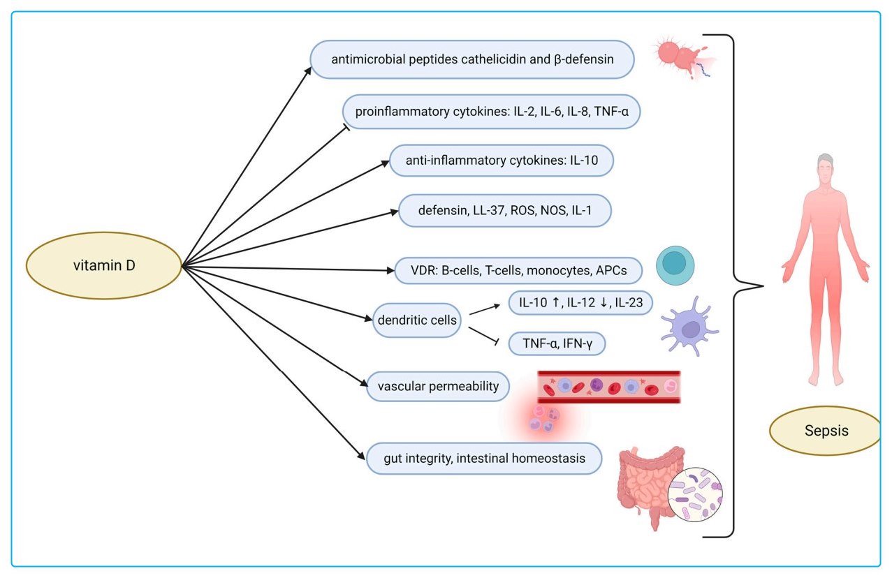 In summary, the relationship between vitamin D and sepsis is complex, with evidence suggesting that vitamin D deficiency is associated with worse outcomes in sepsis patients. While supplementation may offer benefits, the exact dosage and timing for therapeutic intervention require further investigation.