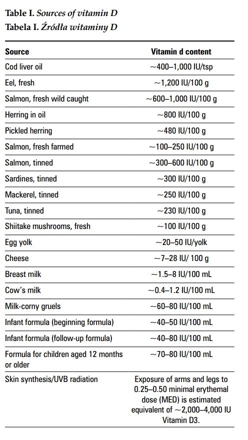 Table I. Sources of vitamin D