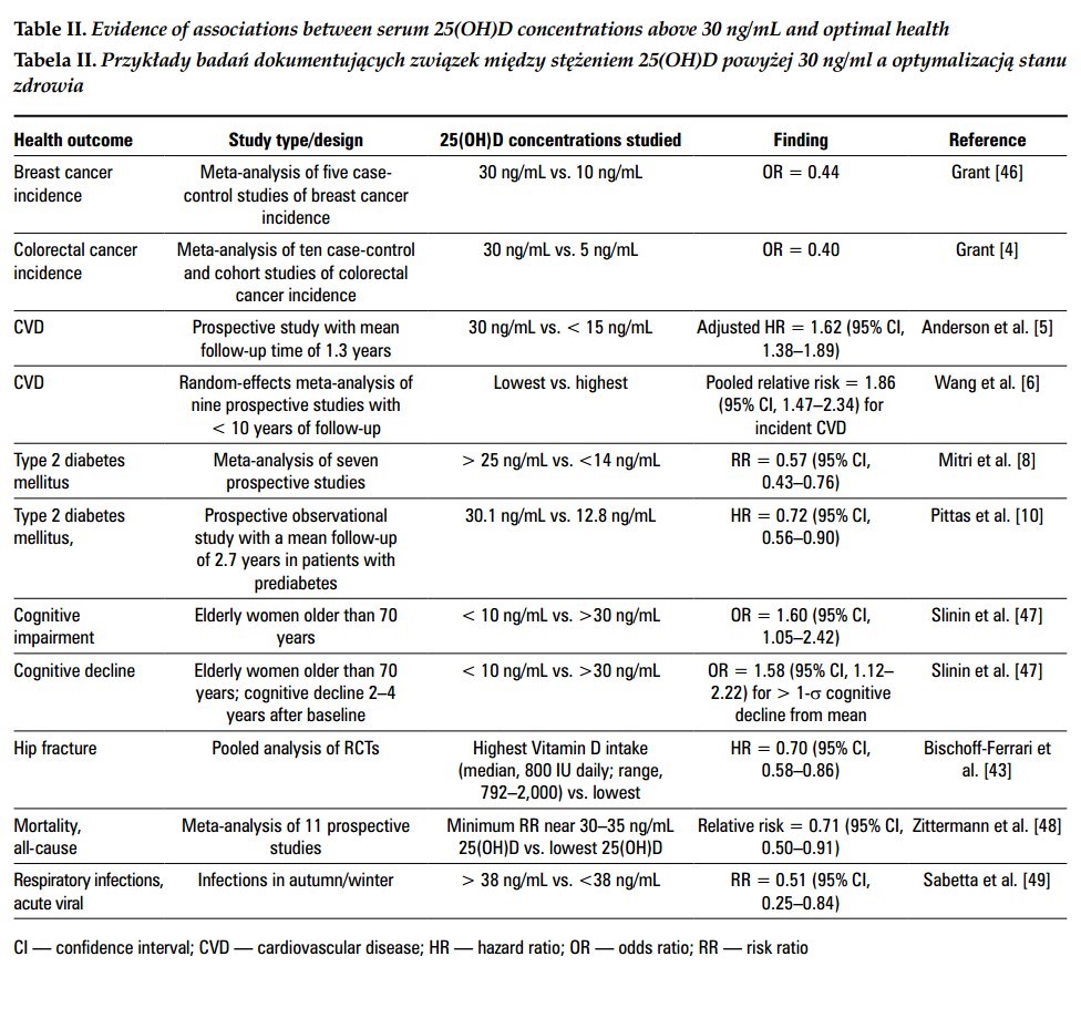 Table II. Evidence of associations between serum 25(OH)D concentrations above 30 ng/mL and optimal health