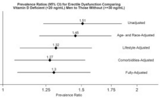 Conclusion: In this cross-sectional analysis of a representative sample of U.S. men, vitamin D deficiency was associated with an increased prevalence of ED independent of ASCVD risk factors. Additional research is needed to evaluate whether treating vitamin D deficiency improves erectile function.