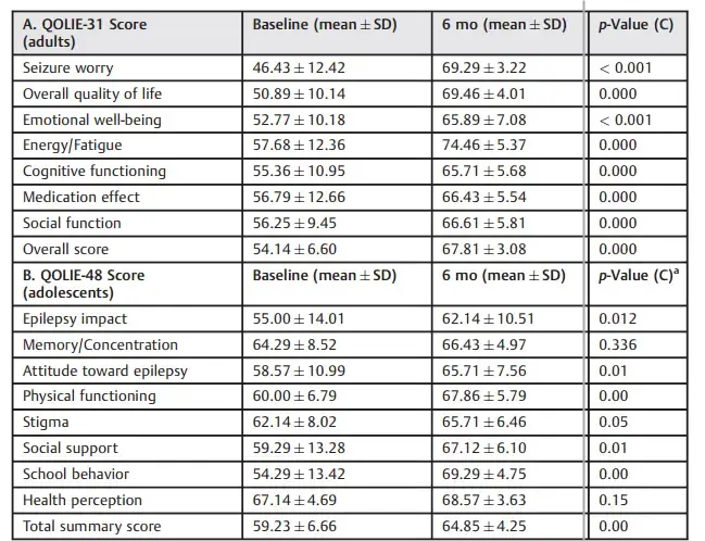 - "Median seizure frequency declined from 5.18 seizures per month to 3.64 seizures per month at 6 weeks and to 4.2 seizures per month at 12 weeks" doi: 10.1016/j.yebeh.2019.03.001