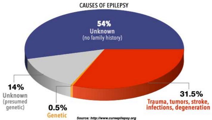 In most cases, the exact way in which epilepsy is inherited is unclear. However, some researchers estimate that genes could account for 70% to 90% of the tendency to develop epilepsy.